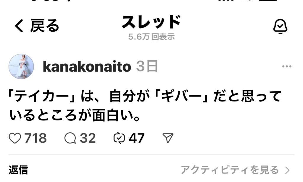 人に奪われてばかりだ、と思っていたら、その我慢と引き換えに「我慢への評価」を要求する「テイカー」になってしまっていたり